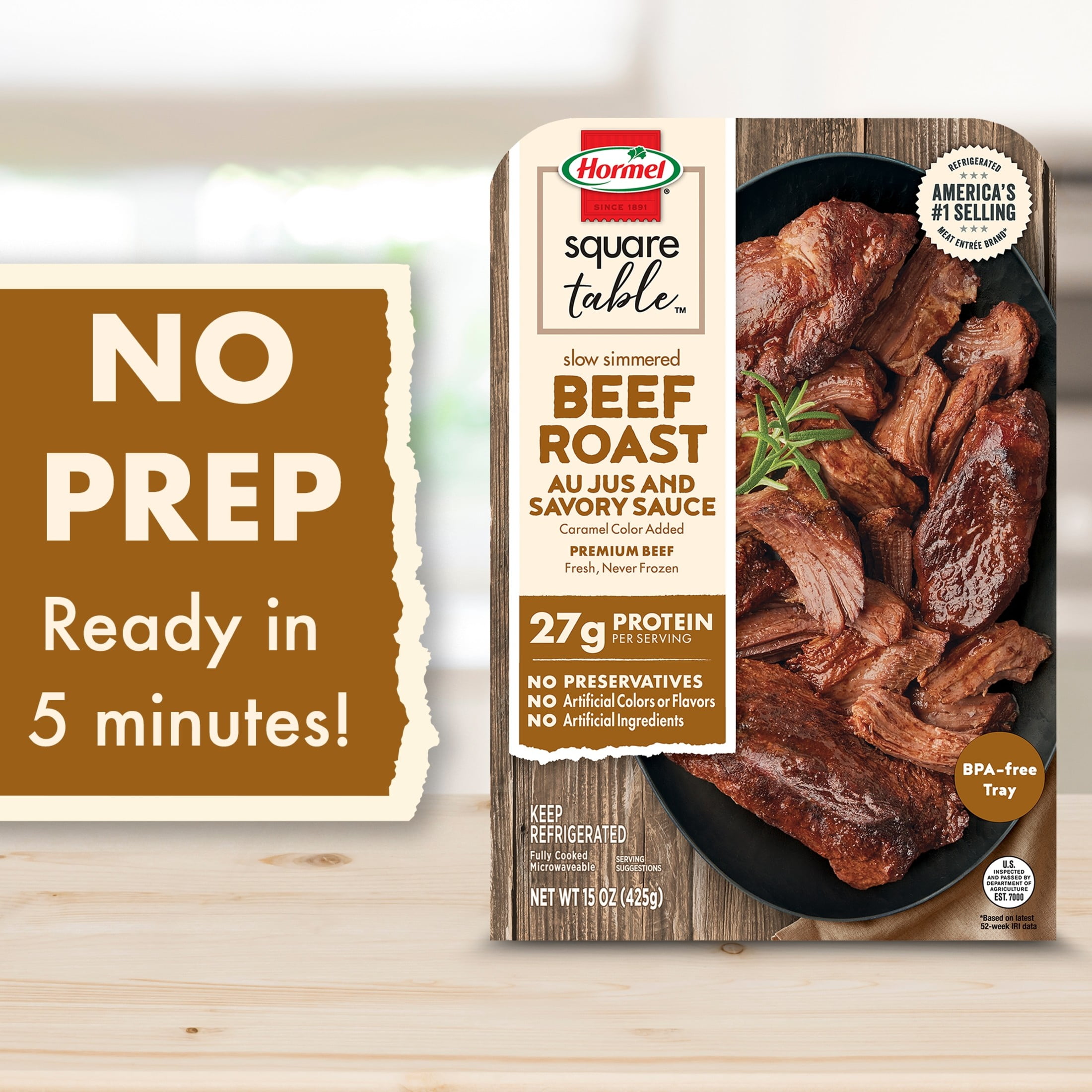 HORMEL SQUARE TABLE Slow Simmered Beef Roast Au Jus and Savory Sauce, Refrigerated, 15 oz Plastic Microwaveable Tray