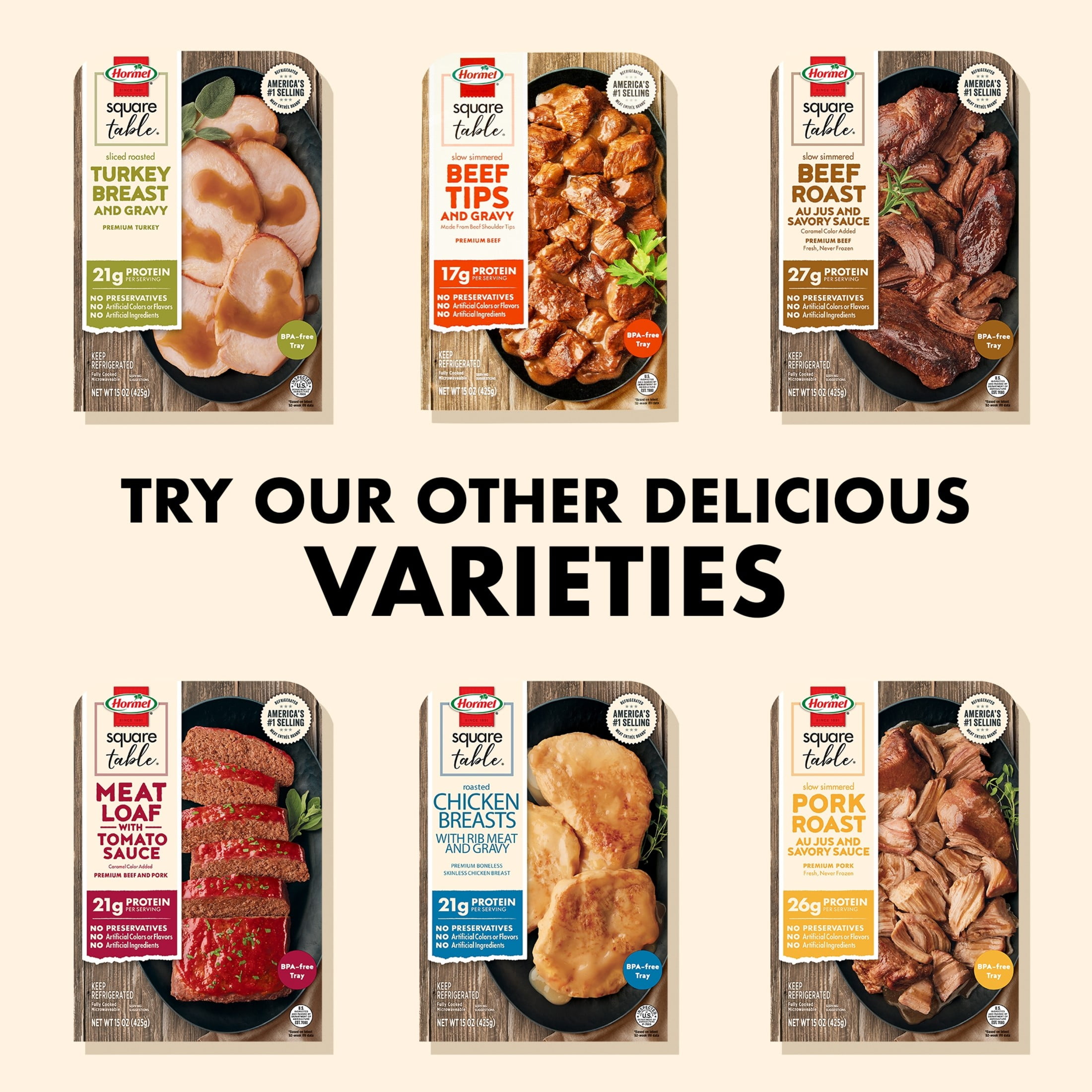 HORMEL SQUARE TABLE Slow Simmered Beef Tips and Gravy, Beef Shoulder Cuts, Refrigerated, 15 oz Plastic Microwaveable Tray