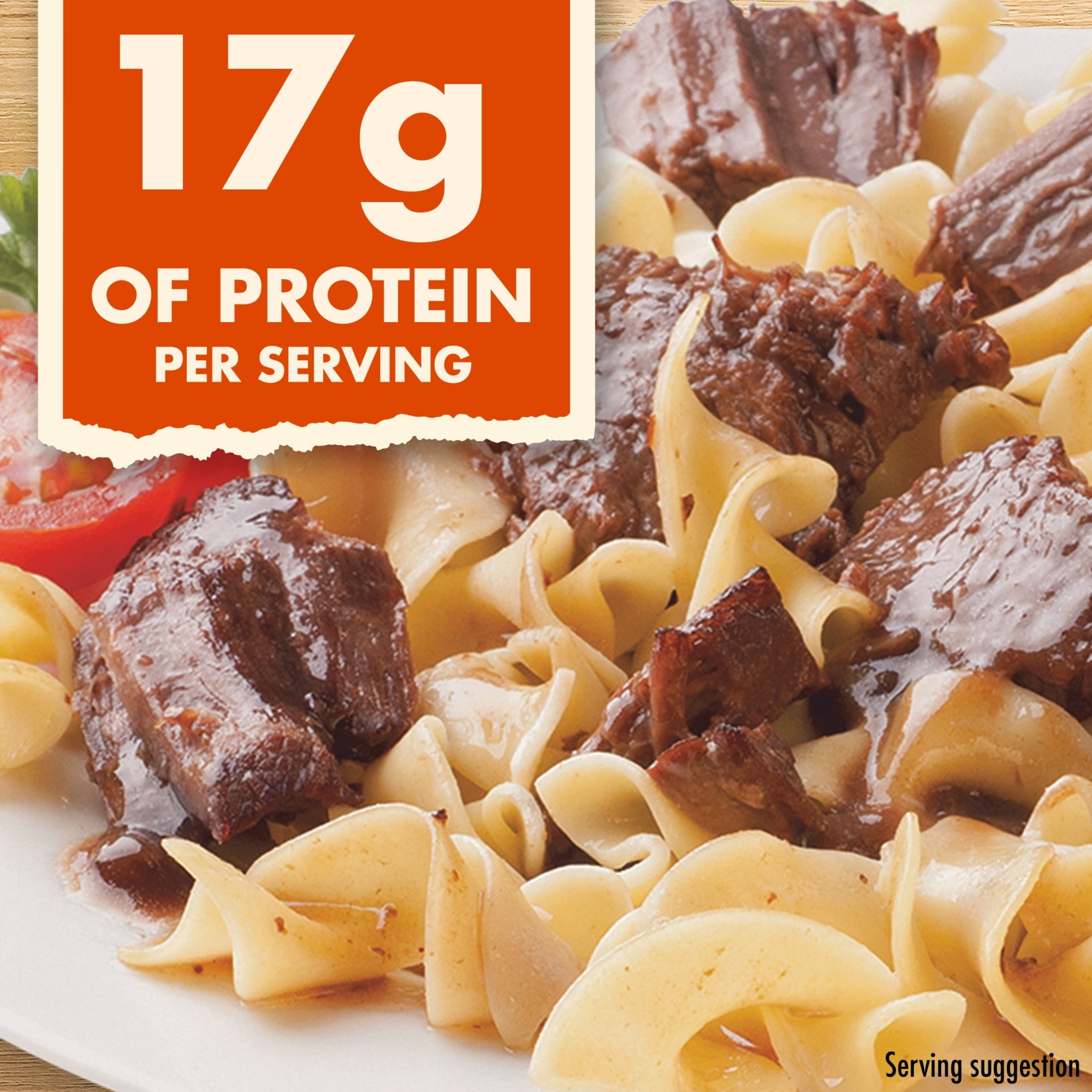HORMEL SQUARE TABLE Slow Simmered Beef Tips & Gravy is a versatile, fully cooked entrée perfect for quick family meals. With 17 grams of protein and 170 calories per serving, it can be served over vegetables, mashed potatoes, egg noodles, or as an open-faced sandwich. The meal comes in a 15 oz microwaveable tray, ready in minutes, and contains no preservatives, artificial colors, flavors, or ingredients.
