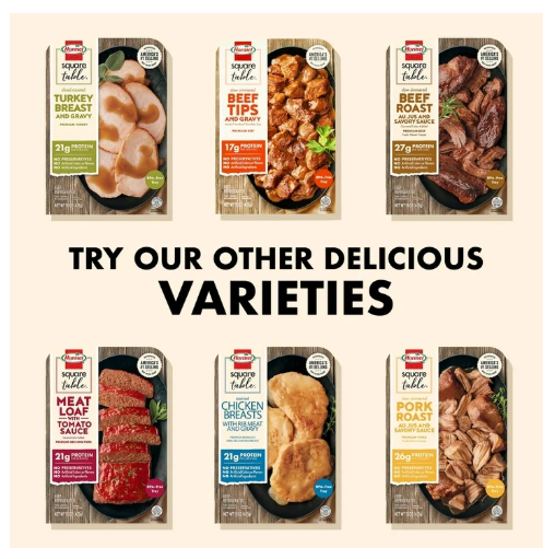 HORMEL SQUARE TABLE Slow Simmered Pork Au Jus & Savory Sauce is a hassle-free homestyle meal