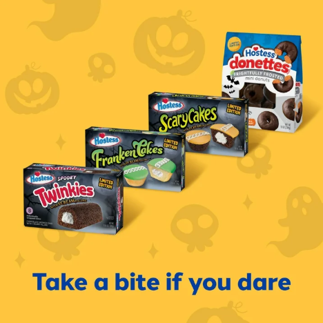 Sink your fangs into limited edition Hostess Donettes Frightfully Frosted Mini Donuts. Each one is coated with irresistibly smooth chocolatey frosting on the outside. The inside is soft and fluffy — with a Halloween twist. It’s easy to see (and taste) why they’re America’s #1 Mini Donut (Based on nationwide independent retail sales data 52 week ending Dec. 30, 2023. Excludes in-store bakery and donut shops). So, break out the bag for a sweet snack at breakfast time and beyond. These mini cake donuts are the perfect pick-me-up for any time of day, whether you’re sharing or snacking solo. Grab a bag to enjoy soft, chocolatey donut bliss all spooky season long.
