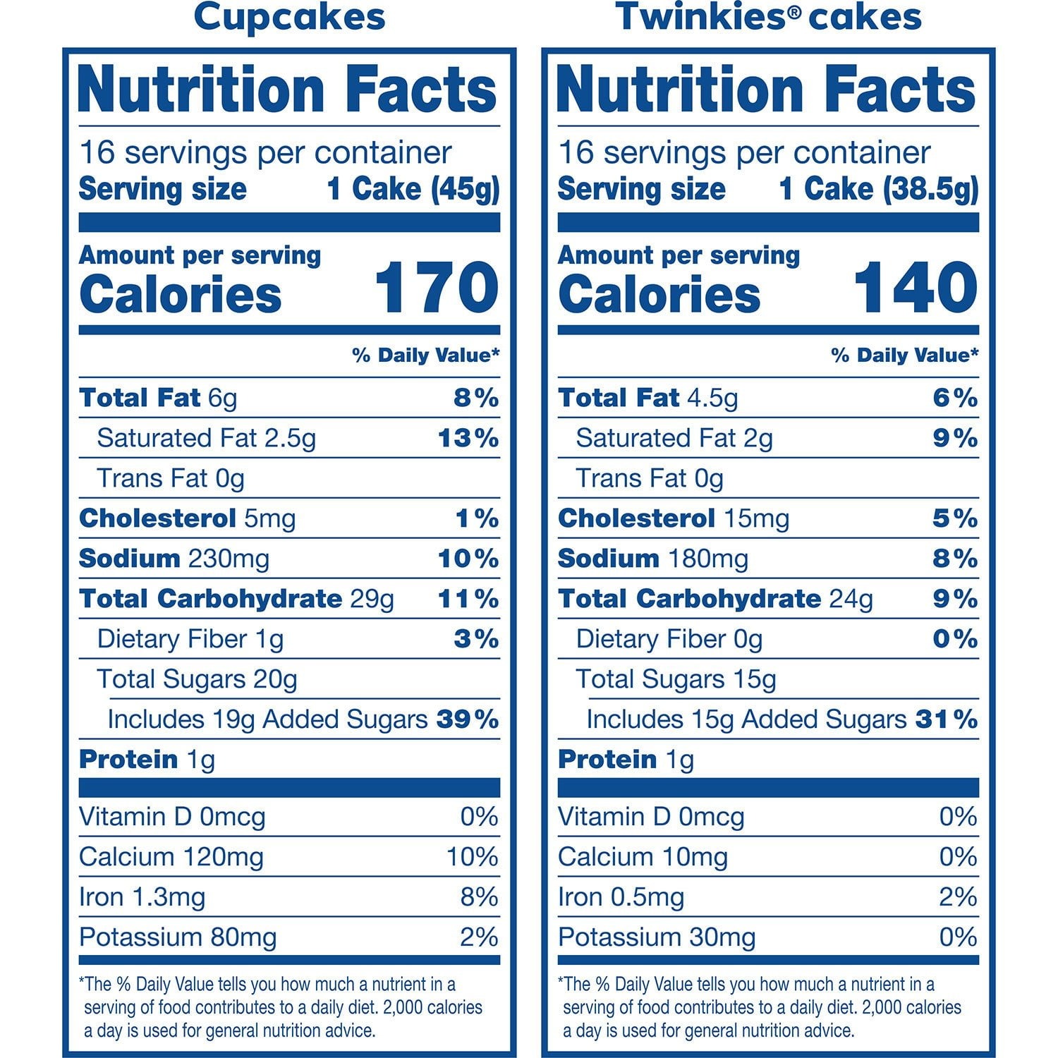 They're a sweet treat to pack into lunch boxes or to take on your next picnic basket. Each package is labeled clearly with ingredients and UPC codes so you can also display them in the included boxes to resell them to customers. Twinkies—the golden sponge cake filled with cream—recall a simpler time. Satisfy your chocolate cake craving without messing up the kitchen when you indulge in the chocolate cake cupcakes with cream filling.