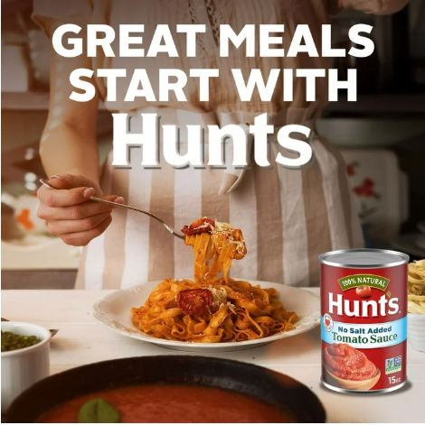 Get cooking with Hunt’s No Salt Added Tomato Sauce. Made with all-natural, no salt added tomatoes, this tomato sauce features the rich flavor of Hunt's Tomato Sauce that you love without the extra sodium. From soups and glazes to pizza sauces and pasta sauces, Hunt’s tomato sauce is a trusted start to easy and delicious meals. 100% natural, this tomato pasta sauce is Non-GMO Project Verified and contains no added salt. with no artificial preservatives or ingredients, you can trust this red sauce as an ideal way to elevate meals for your family. Use this smooth tomato sauce in a casserole, in soups or as a spaghetti sauce. Ready when you need it, this canned tomato sauce is a pantry staple. Keep it on hand for canned goods with delicious flavor. Great meals start with Hunt’s.