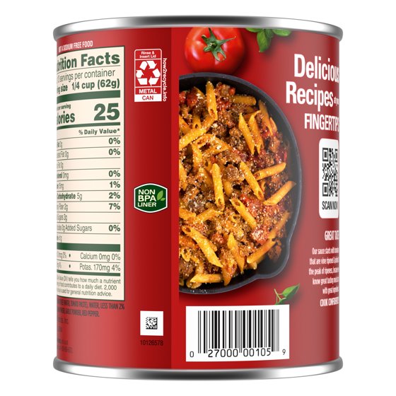 Tomato Puree (Water, Tomato Paste), Water, Less than 2% of: Citric Acid, Onion Powder, Garlic Powder, Red Pepper.
