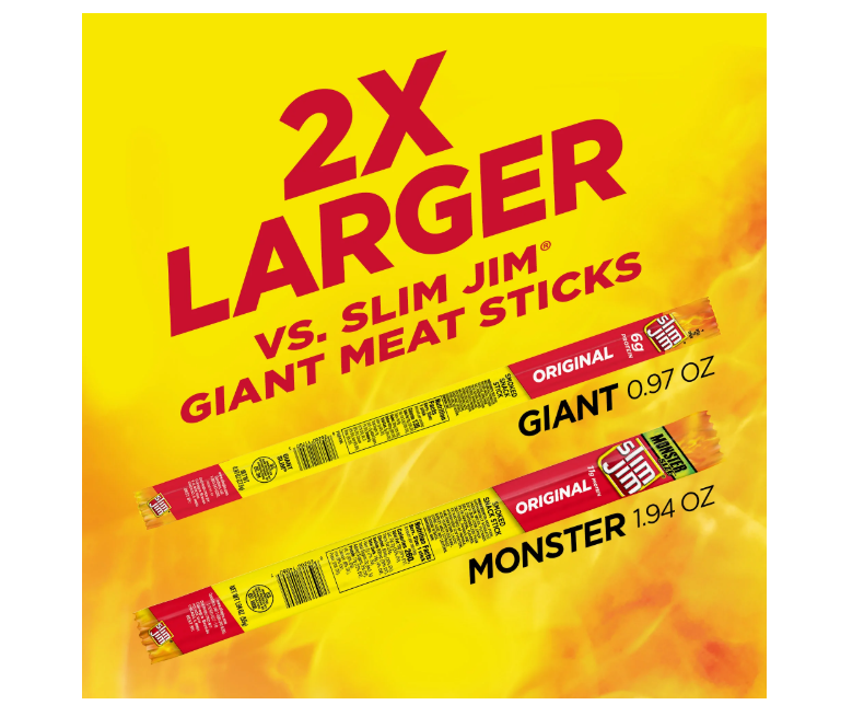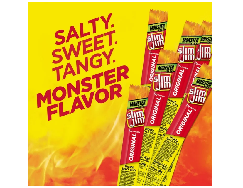 Each Slim Jim Monster Size Original Meat Stick brings a bold, original flavor for satisfying snacks