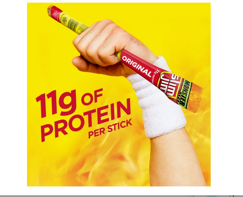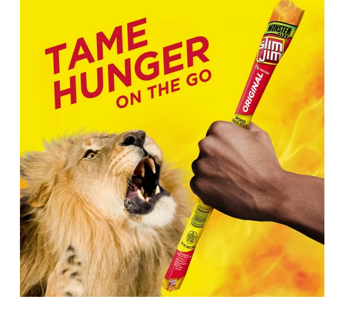 Experience intense, smoky flavor with delicious Slim Jim Monster Size Original Meat Sticks. Made with spicy beef, pork and chicken, these meat sticks contain no artificial flavors or colors for full meaty flavor everyone can love. Each meat stick serving is loaded with 11 grams of protein, ideal for protein snacks that kick hunger to the curb and leave you feeling satisfied. These individually wrapped snacks go where you go and are perfect as travel snacks, school snacks or anywhere meat snacks. Slim Jim Monster Size Original Meat Sticks offer a bold and tasty way to take on the day. Each snack stick is perfect for individual snacks, so you are ready to hit back when savory cravings hit. Slim Jim keeps it interesting with a full line of beef sticks, snack sticks, pork rinds and jerky. Snap into a Slim Jim(R)!