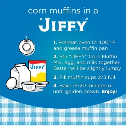 Bring home the comforting taste of tradition with "JIFFY" Corn Muffin Mix, a beloved staple in American kitchens for generations. From weekday dinners to holiday gatherings, this classic mix has been at the heart of family meals since the very beginning. With its sweet flavor and golden, crumbly texture, Corn Muffin Mix pairs perfectly with everything from chili to fried chicken—or can be simply enjoyed warm with a pat of butter. Easy to make and impossible to forget, it’s the same trusted mix that’s been passed down through kitchens and memories alike. Add "JIFFY" Corn Muffin Mix to your cart and keep the tradition going.