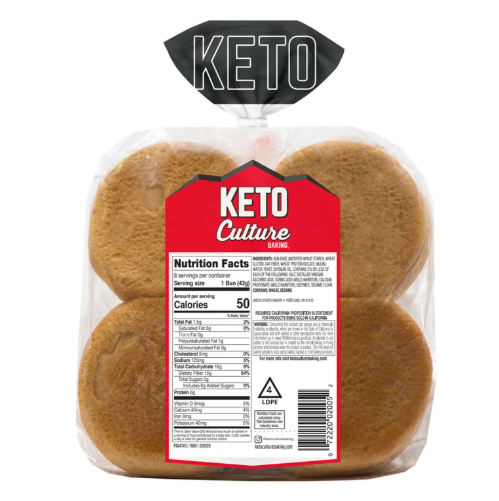 Keto Culture Baking® wants you to be able to live the low-carb life and still enjoy the food you eat. Whether it’s a BLT for lunch or a grilled cheese for dinner, Keto Culture Baking® gives you the canvas for a tasty meal. Keto Culture Buns are friendly for both Keto and Low Carb lifestyles. At a serving size of 1 bun (43 g) it contains 50 calories, 0 mg cholesterol, 0 g trans fats, 0 g sugar and 6 g protein! Each bun has 17 g of carbohydrates and 16 g of dietary fiber (3 g soluble and 13 g insoluble). Keto Culture is proudly baked by Franz Bakery. Franz is a fourth-generation family-owned bakery based in the Northwest. Since 1906, we have been providing communities with delicious baked bread, buns, muffins, bagels, rolls, cookies and pastries. We value the communities we serve and are committed to creating quality baked goods for your home. With over 100 years of baking experience, we have a great selection of items to choose from including many that are free from high fructose corn syrup, artificial colors, and artificial flavors.