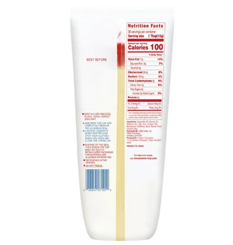 Vegetable Oil (Canola Oil, Soybean Oil), Egg Yolk, Vinegar, Salt, Monosodium Glutamate, Spice, Natural Flavor.