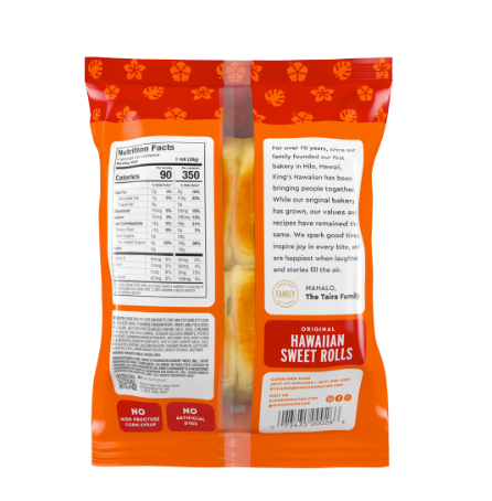 - One 4 count pack of KING'S HAWAIIAN Original Hawaiian Sweet Roll, Shelf-Stable