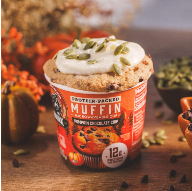 Kodiak pumpkin dark chocolate microwaveable muffin in a cup