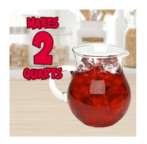 Empty contents into large plastic or glass pitcher. Add 1 cup sugar or 1 cup Splenda® No Calorie Sweetener, Granulated (more or less to taste). Add cold water and ice to make 2 quarts; stir to dissolve. Do not store in metal container. When prepared with sugar, one serving contains 100 calories, 25g total carb and 25g sugars. When prepared with Splenda® No Calorie Sweetener, one serving contains 15 calories, 3g total carb and 3g sugars.
