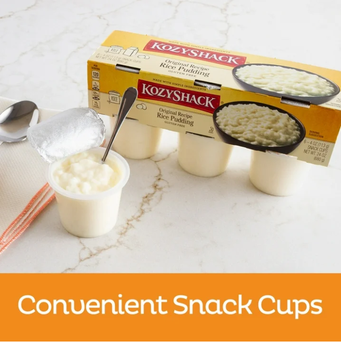 - CONVENIENT SNACK PACKS: Kozy Shack Original Recipe Rice Pudding features six snacks packs; Easy to add to your weekly groceries for lunch or dessert