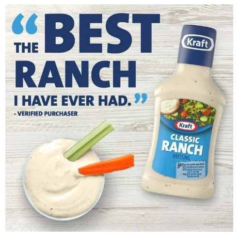 - One 8 fl oz bottle of Kraft Classic Ranch Dressing