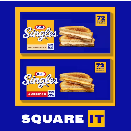 Delicious any way you square it, Kraft Singles White American Cheese Slices deliver the classic American taste and irresistible melt that take your favorite foods to the next level. Made with real dairy and no artificial flavors or preservatives, our sliced cheese has an extra mild, savory flavor and smooth, creamy texture that’s perfectly melty. Our simple squares are ideal for more than just grilled cheese. Try adding Kraft Singles to your breakfast sandwich, burger or tuna melt. Transform steak and bread into a Philly cheesesteak, put a twist on ramen or turn plain fries into ooey gooey cheese fries. When you’re craving classic comfort food, add America's favorite square to your mac and cheese for a simple joy that’s sure to make you smile. Each cheese slice comes individually wrapped for convenience, so you can stack and snack any time. Kraft Singles White American Cheese Slices contain 50 calories and 3 grams of protein per serving. For optimal creamy goodness, keep our large box of 72 cheese slices refrigerated.