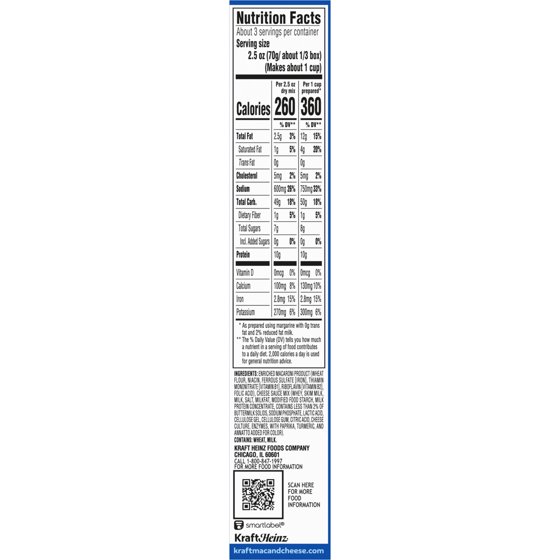 Kraft Three Cheese Mac N Cheese Dinner with Mini-Shell Pasta, 7.25 oz Box, Shelf-Stable
