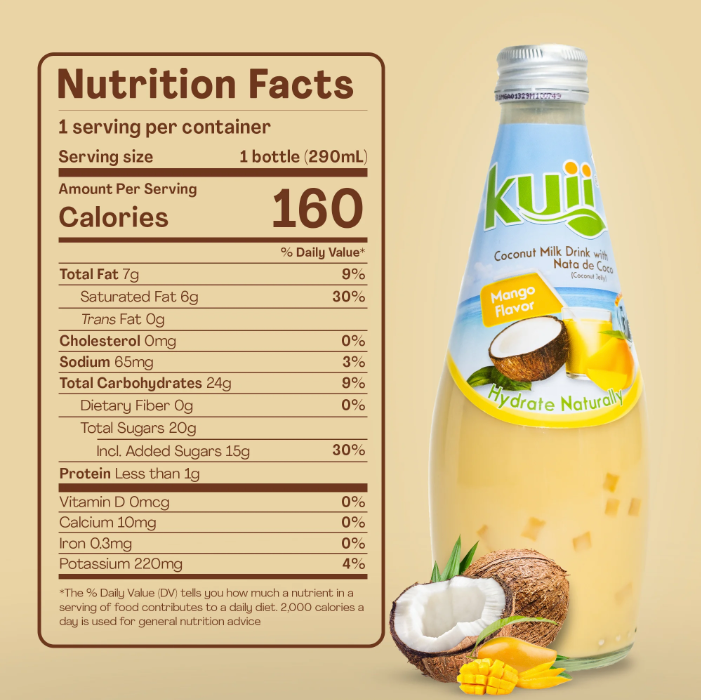 Kuii Drinks Coconut Milk with Nata de Coco, Mango, 290mL