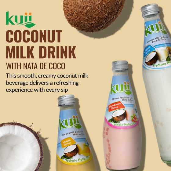 Enjoy the tropical taste of Kuii Coconut Milk Original Flavor with coconut jelly cubes, available in a convenient 290ml shelf-stable bottle. This smooth and creamy coconut milk provides a refreshing experience with every sip, perfect for home, work, or on-the-go hydration. Enriched with Vitamin E, antioxidants, and iron, this drink promotes healthy digestion, boosts energy, and enhances overall wellness. Whether you need a refreshing pick-me-up during the day or a nourishing beverage to support your active lifestyle, Kuii Coconut Milk delivers essential nutrients with delicious flavor. Kuii, which means green in the Mixtec language, was created with the purpose of developing delicious and refreshing drinks for the entire family. Our wide assortment of flavors will take your taste buds on a vacation of a lifetime.