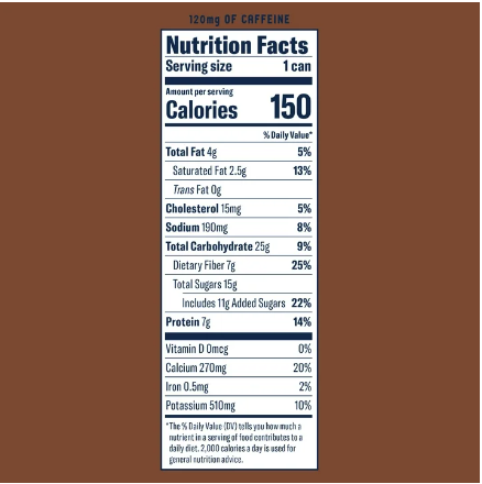 Reduced Fat Milk, Coffee (Water, Coffee), Cane Sugar, Contains Less Than 1% of Acacia, Alkalized Cocoa, Gellan Gum, Lactase, Natural Flavor, Nitrous Oxide, Sea Salt, Vitamin D3.