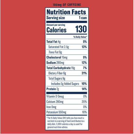 Reduced Fat Milk, Coffee (Water Coffee), Crane Sugar, Contains Less than 1% of Acacia, Gellan Gum, Lactase, Natural Flavor, Nitrous Oxide, Vitamin D3.