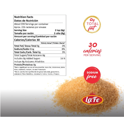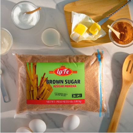 La Fe Light Brown Sugar (Azucar Morena), available in a 4-lb package, has a mild molasses flavor, ideal for various cooking and baking recipes. This product is a light brown sugar variant, known for its soft, moist texture and a slight caramel-like taste, which is less intense compared to dark brown sugar. It's commonly used in recipes like baked goods, sauces, and marinades, adding both sweetness and a rich, warm color. La Fe is recognized for providing quality ingredients, and this light brown sugar is no exception. It's packaged in a size convenient for many recipes, making La Fe Light Brown Sugar (Azucar Morena) a suitable choice for those looking to stock their pantry with a versatile sweetener.