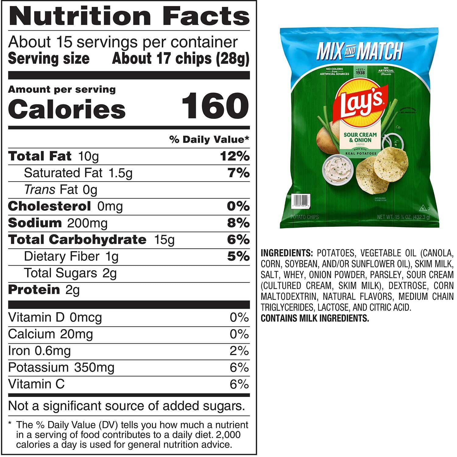 Lay's Sour Cream & Onion Potato Chips, 15.25 oz.