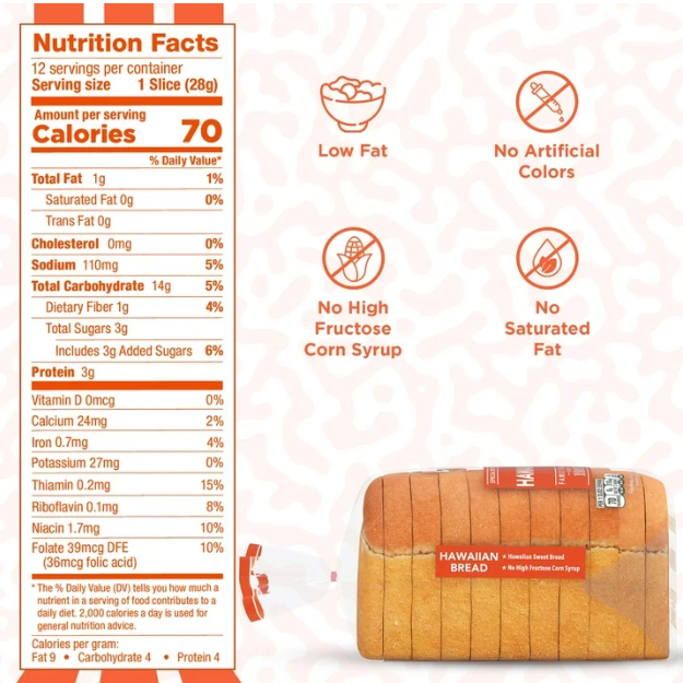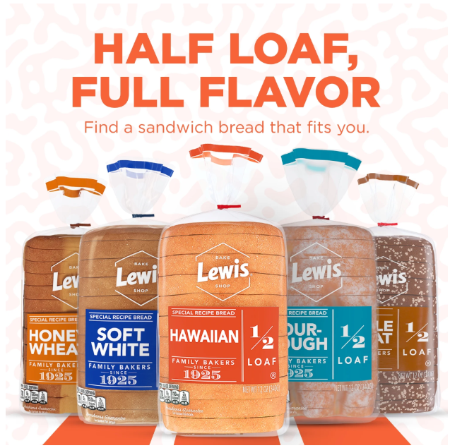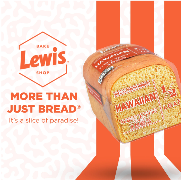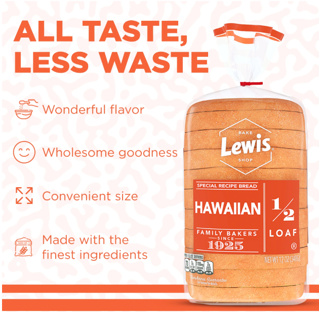 - One 12 oz half loaf of Lewis Bake Shop Hawaiian Bread