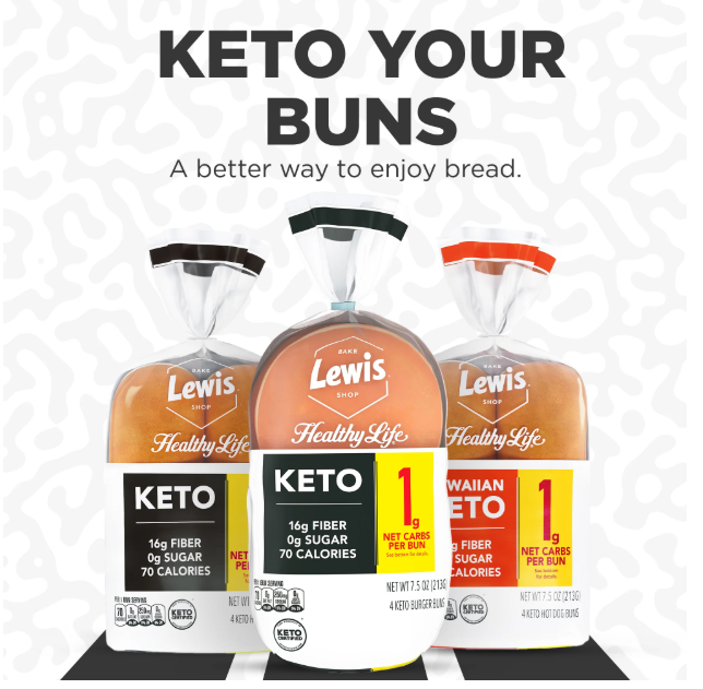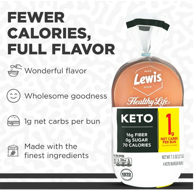 Lewis Bake Shop Healthy Life Keto White Burger Buns, 7.5 oz, 4 Count