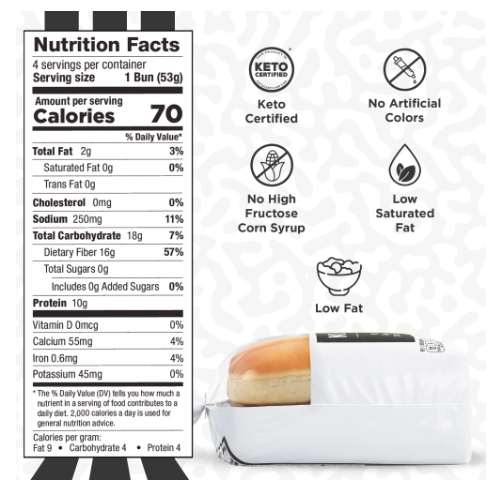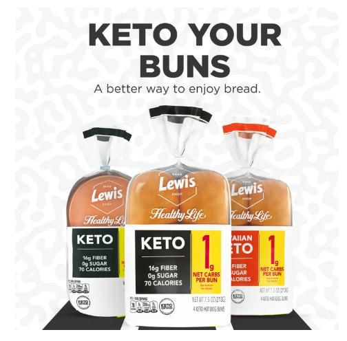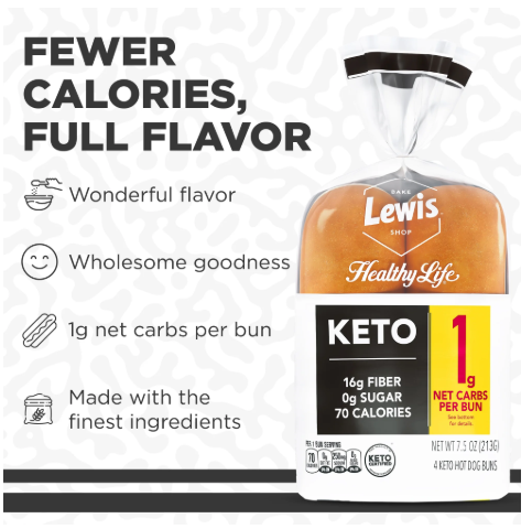 Lewis Bake Shop Healthy Life Keto White Hot Dog Buns, 7.5 oz, 4 Count