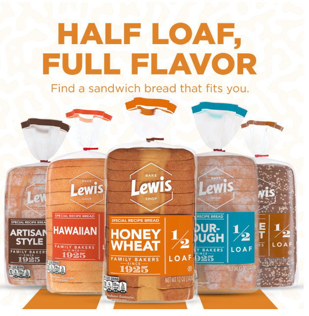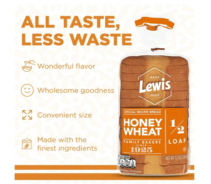 Lewis Bake Shop Honey Wheat Half Loaf Bread, 1/2 Loaf, 12 oz