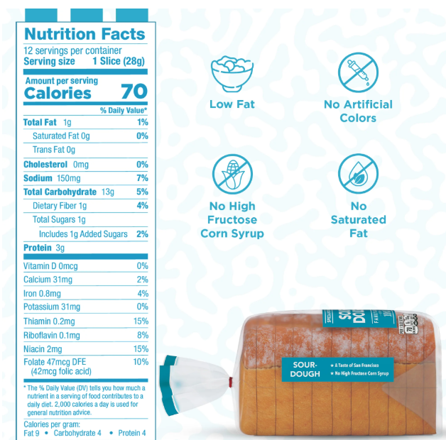 UNBLEACHED ENRICHED WHEAT FLOUR [FLOUR, BARLEY MALT, NIACIN (VITAMIN B3), IRON, THIAMIN MONONITRATE (VITAMIN B1), RIBOFLAVIN (VITAMIN B2), FOLIC ACID (VITAMIN B9)], WATER, SUGAR, YEAST, CONTAINS 2% OR LESS OF THE FOLLOWING: LACTIC ACID AND ACETIC ACID, SOYBEAN OIL, SALT, WHEAT GLUTEN, FUMARIC ACID, DOUGH CONDITIONERS (ETHOXYLATED MONO- AND DIGLYCERIDES, SODIUM STEAROYL LACTYLATE, ASCORBIC ACID), CALCIUM PROPIONATE (TO RETAIN FRESHNESS), SOY FLOUR, YEAST NUTRIENTS (AMMONIUM SULFATE, MONOCALCIUM PHOSPHATE), SOY LECITHIN. Contains Soy, Wheat.