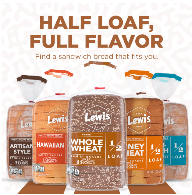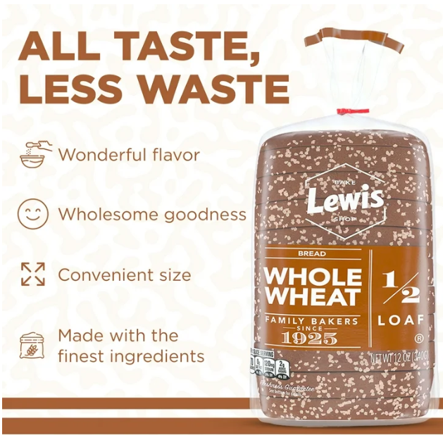The Lewis Bake Shop Whole Wheat Half Loaf Bread is perfectly sized and packed with bold flavor. Baked with high-quality whole wheat flour and no high-fructose corn syrup, this half loaf offers a delicious, nutrient-rich option for any meal. Whether you're making a hearty sandwich, enjoying a slice with your favorite spread, or toasting it for a quick snack, the Lewis Bake Shop Whole Wheat Half Loaf bread delivers the ideal balance of taste and nutrition. At 12 oz, this shelf-stable loaf ensures you always have a wholesome option on hand. Dedicated to baking delicious and wholesome products since 1925, the Lewis Family knows you’ll love the satisfying flavor of the Lewis Bake Shop Whole Wheat Half Loaf.