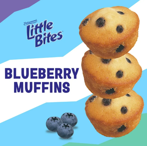Entenmann's Little Bites Blueberry Mini Muffins are made with real blueberries; a delightful treat for kids and adults alike