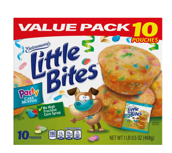 Entenmann's Muffins Little Bites Party Cake (Value Pack) Mini Muffins are the perfect sweet treat for kids and adults alike, bringing a delightful burst of flavor to any moment. Each of the 10 convenient pouches contains moist, delicious mini muffins that , lunch, or a quick snack. With no high fructose corn syrup. Perfectly sized for little hands, they make lunchtime special and are great for parties or as an after-school treat. Enjoy them with a glass of milk or alongside your favorite ice cream for an extra touch of delight. These muffins are crafted to connect with sweet moments that bring joy to your family at an affordable price. Experience the harmony of taste in every bite!