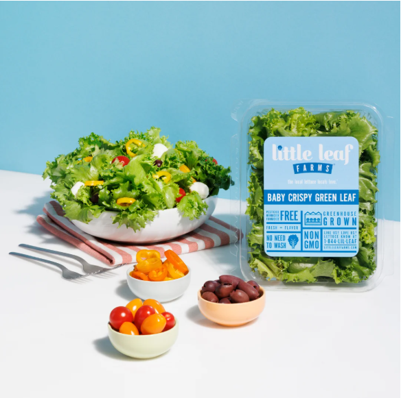 Little Leaf Farms Baby Crispy Green Leaf lettuce is the perfect addition to any salad or sandwich. Our deliciously crisp, wonderfully fresh, and uniquely long-lasting greens are grown in a state-of-the-art, sustainable greenhouse that harnesses sunlight and fresh rainwater. With an a fully automated, hands-free growing process to seeding to packaging, there’s no need to wash. Just open the container and enjoy!