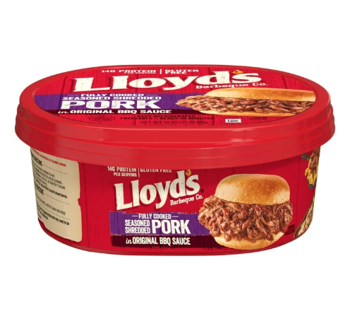 Includes one 16 oz plastic tub of refrigerated LLOYD'S Seasoned Shredded Pork