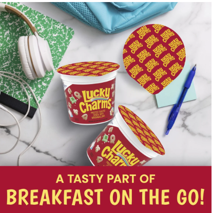 TAKE IT WITH YOU: This Lucky Charms individual cereal cup is great to grab and go; Enjoy it as part of breakfast; Pack one for an after school snack, a treat in the car, or anytime you need a tasty snack on the move