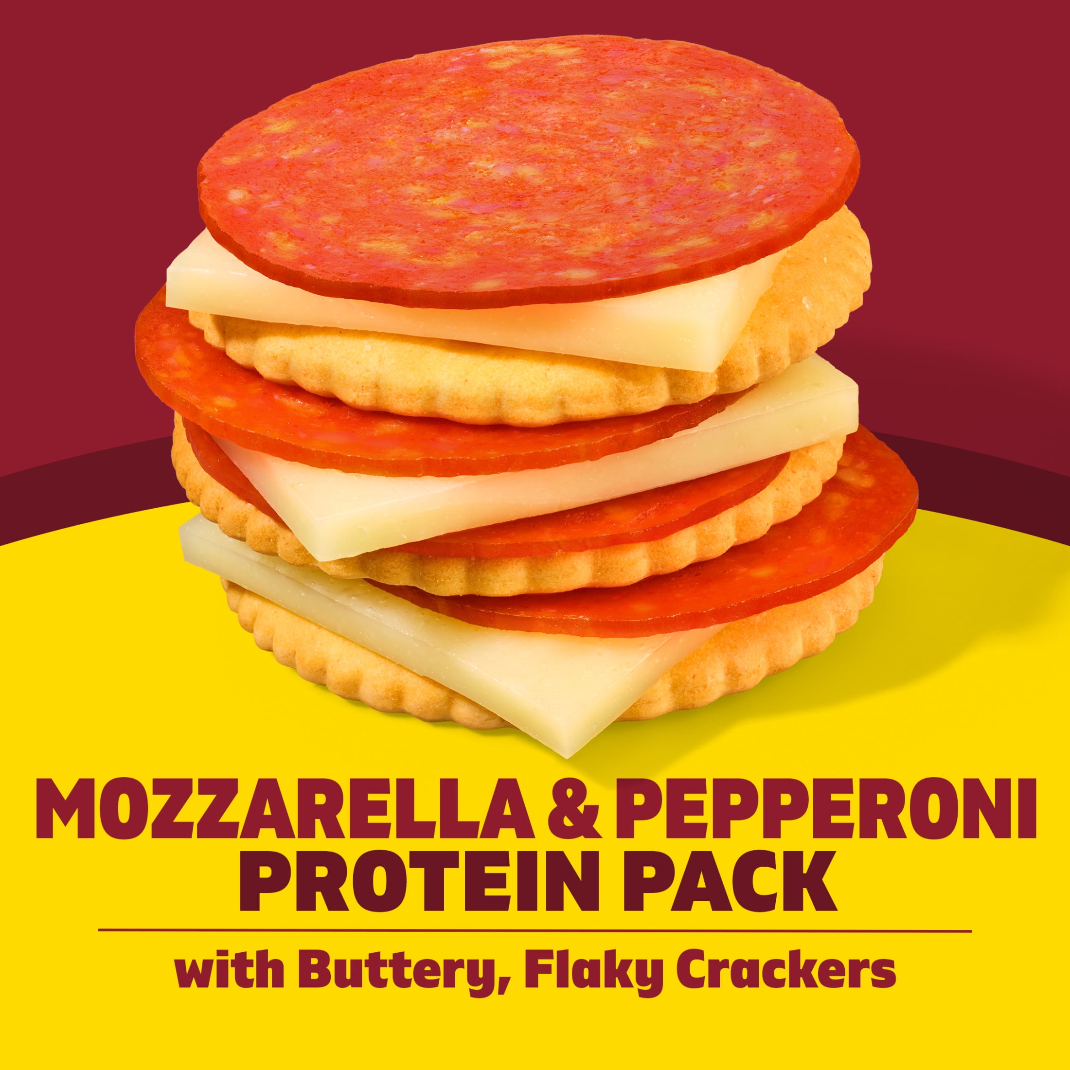 MOZZARELLA PASTEURIZED PREPARED CHEESE PRODUCT (PART-SKIM MILK, WATER, MILK PROTEIN CONCENTRATE, CONTAINS LESS THAN 2% OF SALT, SODIUM CITRATE, MILKFAT, CHEESE CULTURE, SORBIC ACID AS A PRESERVATIVE, ENZYMES, VITAMIN A PALMITATE, WITH SUNFLOWER LECITHIN ADDED FOR SLICE SEPARATION), CONTAINS: MILK; CRACKERS (ENRICHED WHEAT FLOUR [FLOUR, NIACIN, REDUCED IRON, THIAMINE MONONITRATE, RIBOFLAVIN, FOLIC ACID], PALM OIL, SUGAR, VEGETABLE OIL [CANOLA, AND/OR SOYBEAN, AND/OR PALM OIL], CONTAINS 2% OR LESS OF SALT, LEAVENING [BAKING SODA, AMMONIUM BICARBONATE, MONOCALCIUM PHOSPHATE], SOY LECITHIN, NATURAL FLAVORS), CONTAINS: WHEAT, SOY; PEPPERONI (PORK, SALT, SPICES [CONTAINS MUSTARD], DEXTROSE, OLEORESIN OF PAPRIKA, FLAVORING, GARLIC POWDER, LACTIC ACID STARTER CULTURE, SODIUM NITRITE).