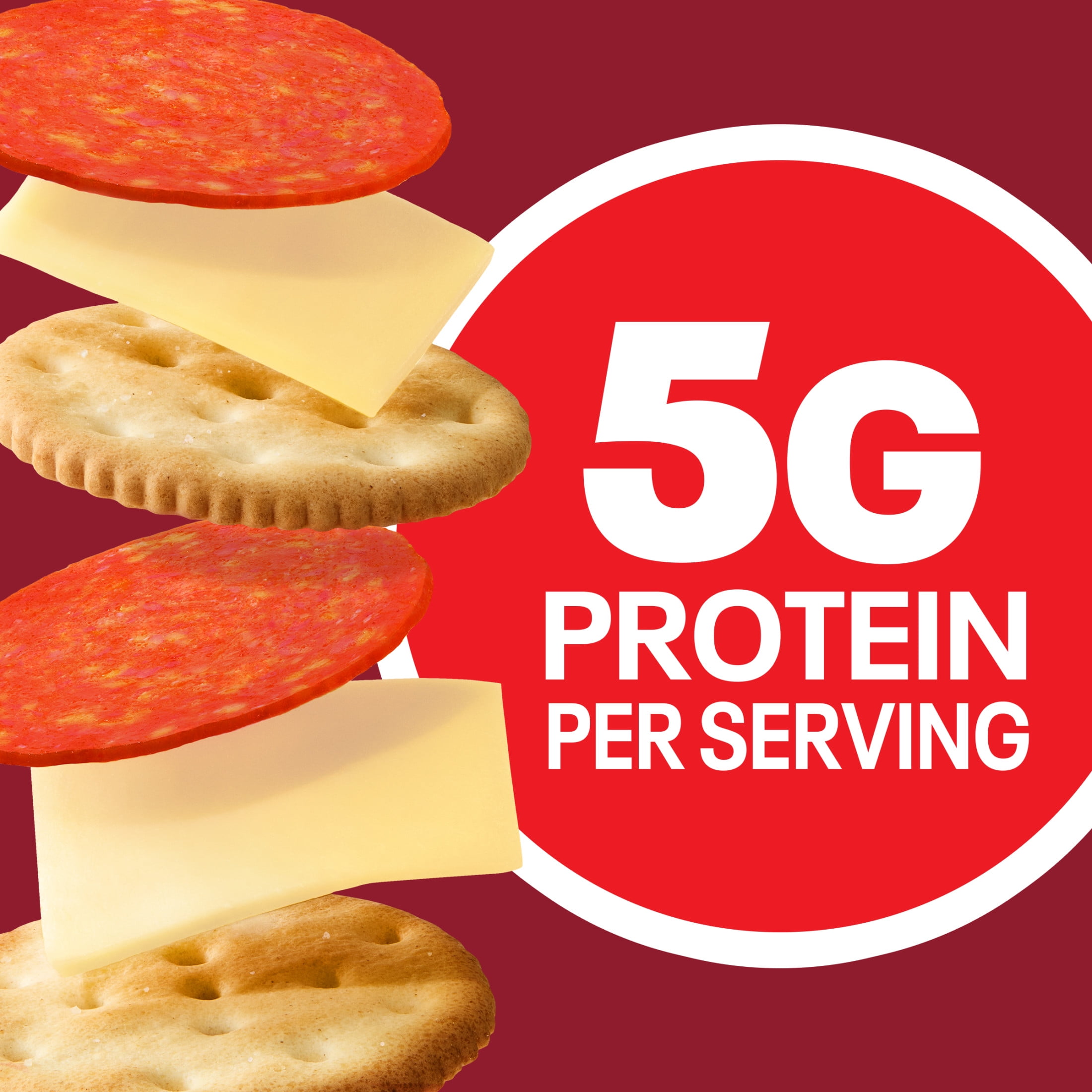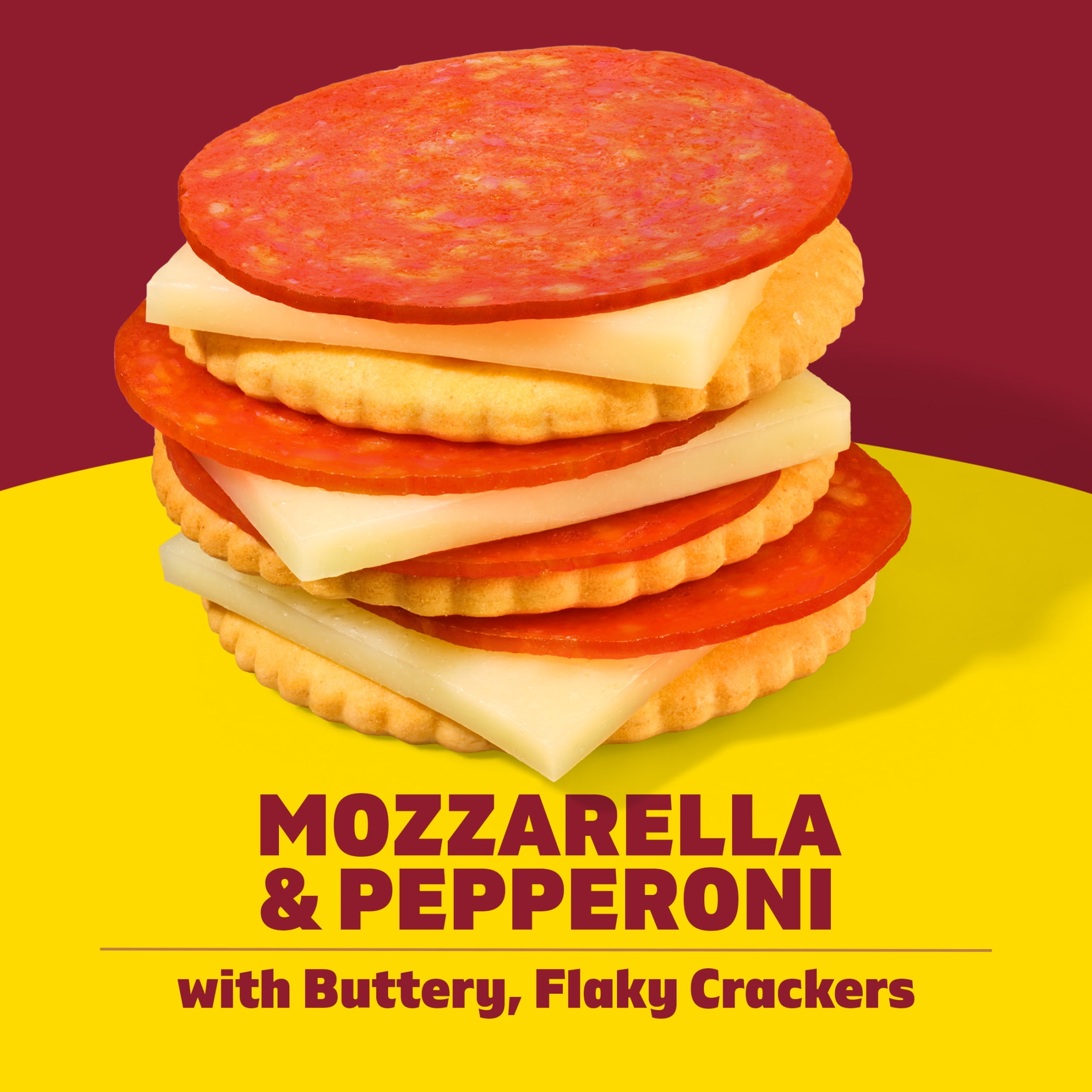 Crackers (Enriched Wheat Flour [Flour, Niacin, Reduced Iron, Thiamine Mononitrate, Riboflavin, Folic Acid], Palm Oil, Sugar, Vegetable Oil [Canola, and/or Soybean, and/or Palm Oil], Contains 2% or Less of Salt, Leavening [Baking Soda, Ammonium Bicarbonate, Monocalcium Phosphate], Soy Lecithin, Natural Flavors); Mozzarella Pasteurized Prepared Cheese Product (Part-Skim Milk, Water, Milk Protein Concentrate, Contains Less than 2% of Salt, Sodium Citrate, Milk Fat, Cheese Culture, Sorbic Acid as a Preservative, Enzymes, Vitamin A Palmitate, with Sunflower Lecithin Added for Slice Separation); Pepperoni (Pork, Salt, Spices [Contains Mustard], Dextrose, Oleoresin of Paprika, Flavoring, Garlic Powder, Lactic Acid Starter Culture, Sodium Nitrite).