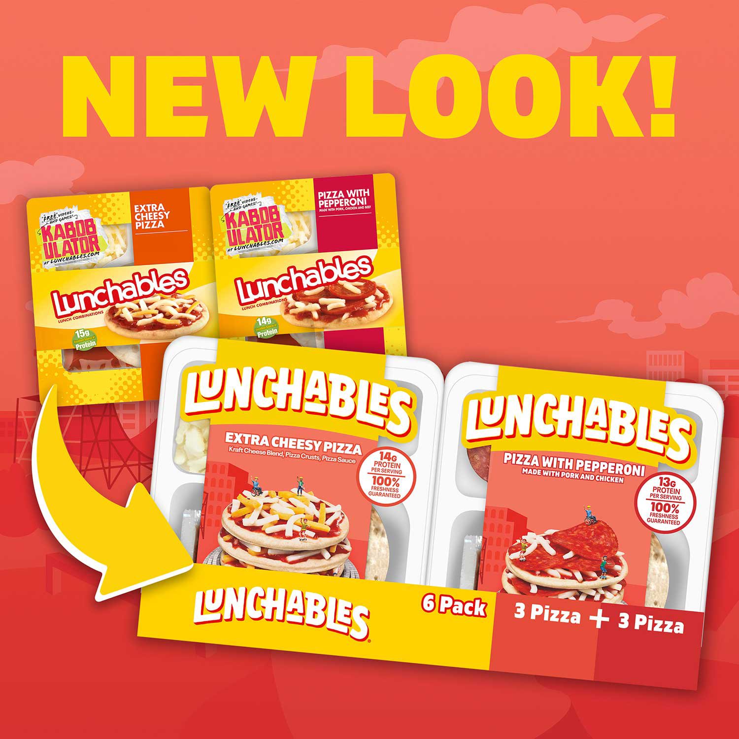 Overall, the Lunchables Pizza Kits Variety Pack 6 pk. is a delicious and convenient option for a quick lunch or snack. Featuring real, epic food and great for on the go, each ingredient comes in its own individual compartment in our serving tray, making it easy and fun to build your own unique combinations. Every 4.2 ounce pizza snack tray contains between 13 to 14 grams of protein per serving. Always remember to keep your Lunchables pizza refrigerated until you are ready to experience a delicious snack. Our variety pack includes 3 extra cheesy pizza kits and 3 pizza with pepperoni kits so kids can choose their favorite flavor.