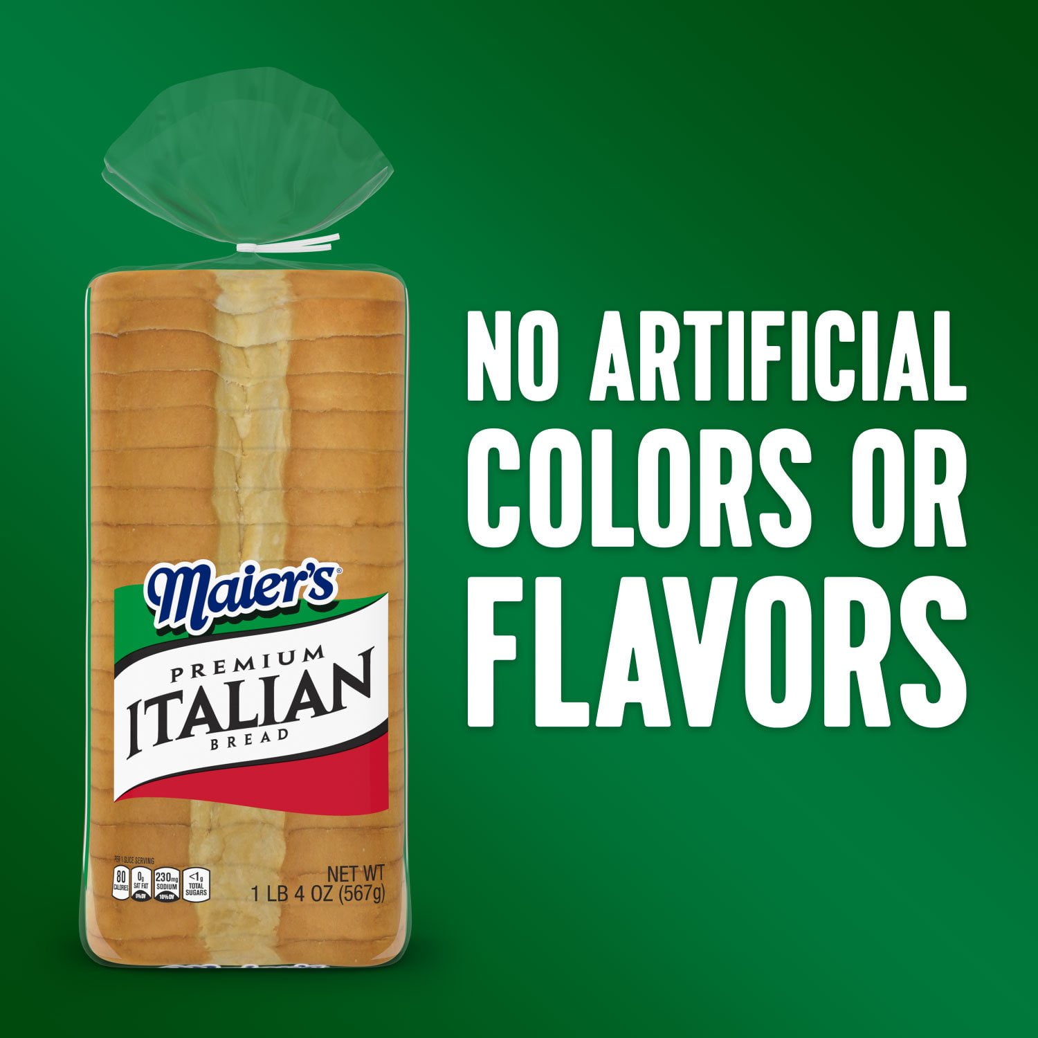 Traditionally, Italian bread is crusty, yeast-raised bread, unsweetened and made without shortening. It's baked in long, thick loaves and has tapered ends. Maier's Italian-Style Bread combines the size and shape of traditional Italian bread with convenience. As delicious as fresh-baked bread from a small bakery or a chef, Maier's fresh Italian bread comes pre-sliced, like most commercial breads made and sold in the United States. Get the flavor of bakery bread with the convenience you've come to expect from the grocery store.