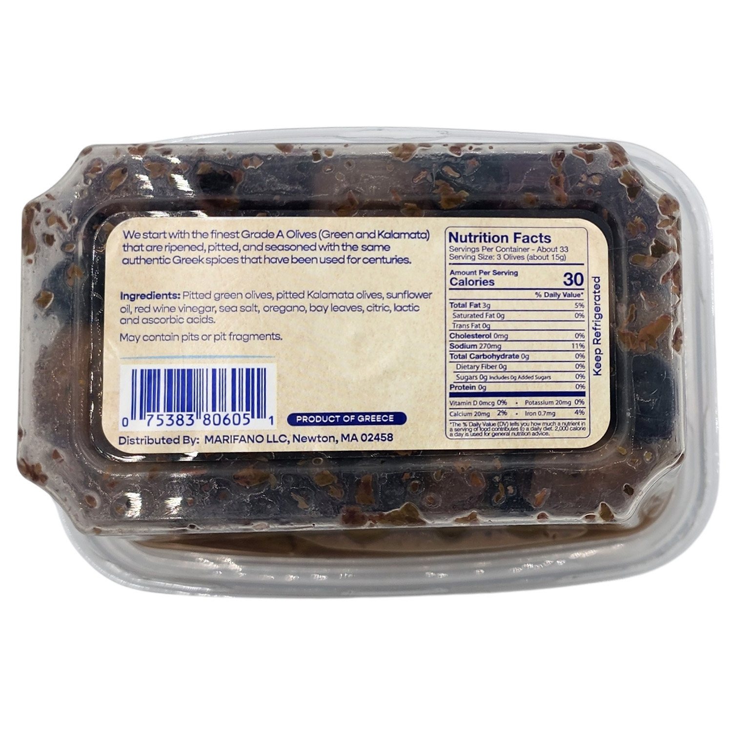 This Marifano™ Pitted Greek Olive Medley (17.64 oz.) is full of authentic flavor and are carefully marinated with the best spices and herbs. The pitted olives offer up sun-ripened flavores that make Greek olives such a perennial favorite.