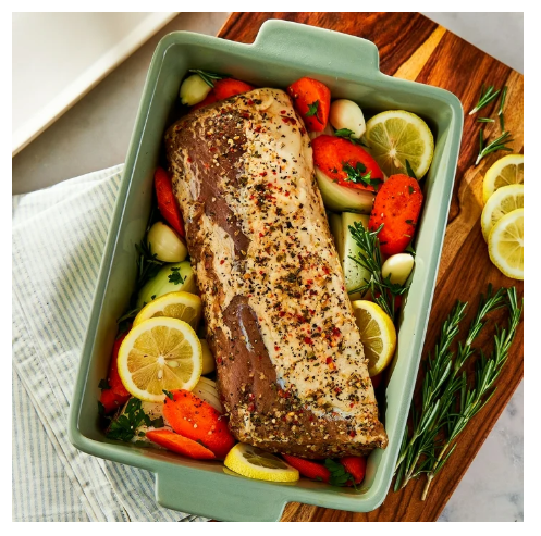 Create a convenient and delicious dinner that's bursting with flavor with our Marketside Asiago Peppercorn Fresh Seasoned Pork Loin Filet. This tender and juicy fresh pork loin filet is rubbed with natural seasonings including real asiago cheese. It offers 21 grams of protein per serving, is gluten-free, rich in iron, free from MSG, and of the highest quality standard. Simply bake it in the oven or throw it on the grill for a versatile and simple meal option, or serve it with fresh veggies, a salad packed with your favorite ingredients, or a yummy side of your choice done just the way you like it. One serving is 4 oz (112g). Make something the whole family will enjoy with our Marketside Asiago Peppercorn Fresh Seasoned Pork Loin Filet.