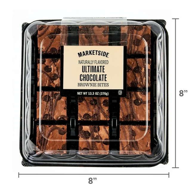 Satisfy your sweet tooth with our Marketside Bite Sized Ultimate Chocolate Brownies. These bite-sized soft brownies are made with rich chocolate and topped with chocolate chips and drizzle. Every 13.3-ounce package contains 12 pre-cut brownies. They also come in a reclosable container to help maintain freshness. Best served at Shelf-Stable/Ambient temperatures. Treat yourself today!