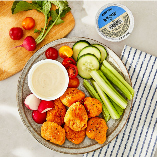 Marketside Blue Cheese Dipping Sauce is the ultimate companion for all your favorite snacks. Enjoy this creamy sauce with a tantalizing blue cheese flavor. Whether it's crispy chicken, chicken wings, golden fries, fresh veggies, or even crispy onion rings, this sauce has got you covered. With a perfect blend of flavors, every dip is a burst of bold, mouthwatering taste that transforms any dish. No more settling for bland - elevate every bite and make your meals unforgettable with Marketside Blue Cheese Dipping Sauce.