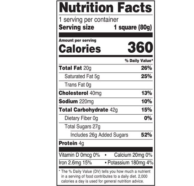 GRANULATED CANE SUGAR, CANOLA OIL, ENRICHED WHEAT FLOUR (WHEAT FLOUR, NIACIN, REDUCED IRON, ASCORBIC ACID [ADDED AS A DOUGH CONDITIONER], THIAMINE MONONITRATE, RIBOFLAVIN, AMYLASE, FOLIC ACID), LIQUID WHOLE EGG, UNSWEETENED CHOCOLATE, GLUCOSE SYRUP, VEGETABLE SHORTENING (PALM OIL, CANOLA OIL), COCOA (PROCESSED WITH ALKALI), NATURAL FLAVOR, WATER, COCOA BUTTER, DEXTROSE, SEA SALT, BAKING POWDER (SODIUM ACID PYROPHOSPHATE, SODIUM BICARBONATE, CORN STARCH, MONOCALCIUM PHOSPHATE, CALCIUM SULFATE), FANCY MOLASSES, SALT, MILK INGREDIENTS, SOY LECITHIN (AN EMULSIFIER).
