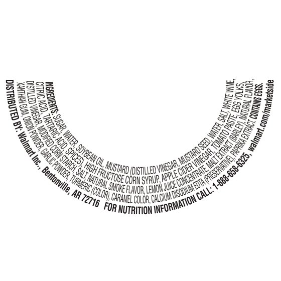 Sugar, water, soybean oil, mustard (distilled vinegar, mustard seed, water, salt, white wine, citric acid, tartaric acid, spices), high fructose corn syrup, apple cider vinegar, tomato paste, egg yolks, distilled vinegar, modified corn starch, salt, natural smoke flavor, lemon juice concentrate, malt extract (barley), natural flavor, xanthan gum, onion powder, garlic powder, turmeric (color), caramel color, calcium disodium EDTA (preservative), paprika extract.