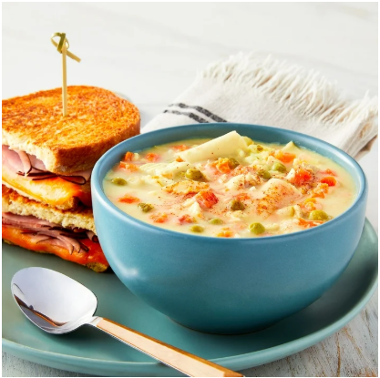 Are you ready for a mouthwatering experience? Look no further than the Marketside Chicken Pot Pie Soup! This soup is jam-packed with juicy white and dark chicken meat, fresh carrots, sweet peas, and savory onions, all blended together to give you the authentic taste of a homemade Chicken Pot Pie. The best part? We use only chicken that has never been given antibiotics and real vegetables, so you can indulge in this delicious soup without any guilt. With Marketside's Chicken Pot Pie Soup, you can enjoy a warm, hearty, and comforting meal in just a few minutes, without compromising on taste or quality. It’s not just a meal; it’s a delightful and cozy experience in every bite.