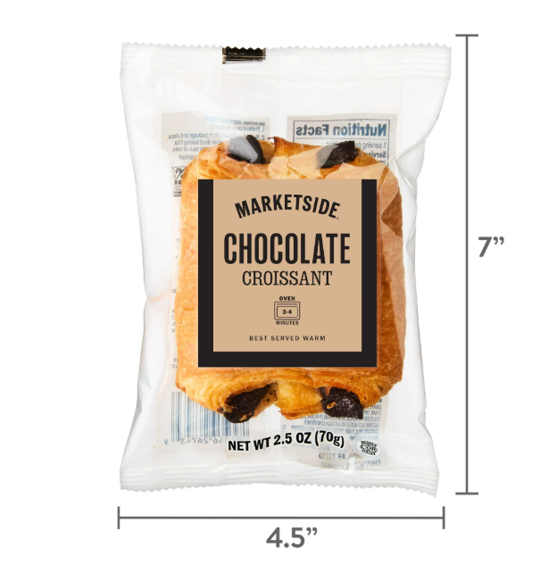 This Marketside Chocolate Croissant is a perfect on-the-go addition to any meal or occasion. Each whole Marketside Chocolate Croissant is individually wrapped to provide a fresh and flaky croissant experience. Each baked, flaky, buttery chocolatey croissant is shelf-stable and an excellent treat that you can enjoy for breakfast, lunch, or dinner. Treat yourself to a bit of sweetness with a Marketside Chocolate Croissant today.