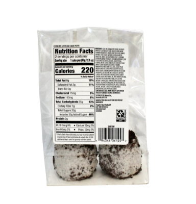 - Marketside Cookies & Cream Cake Pops, 4.2 ounces, 2 Count Pack